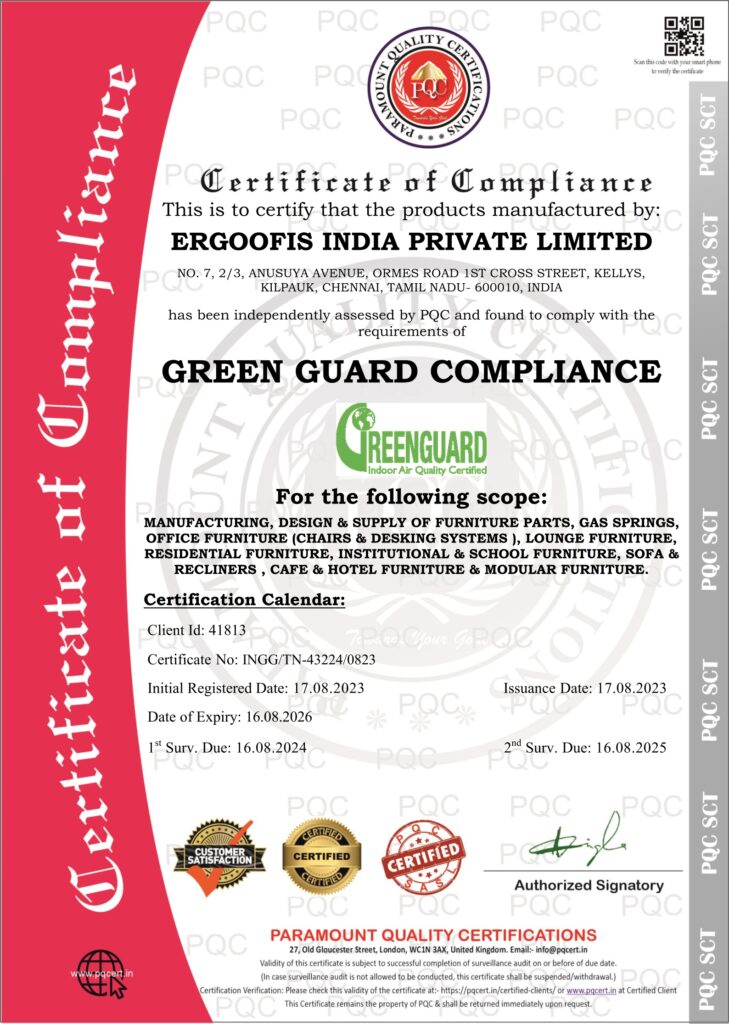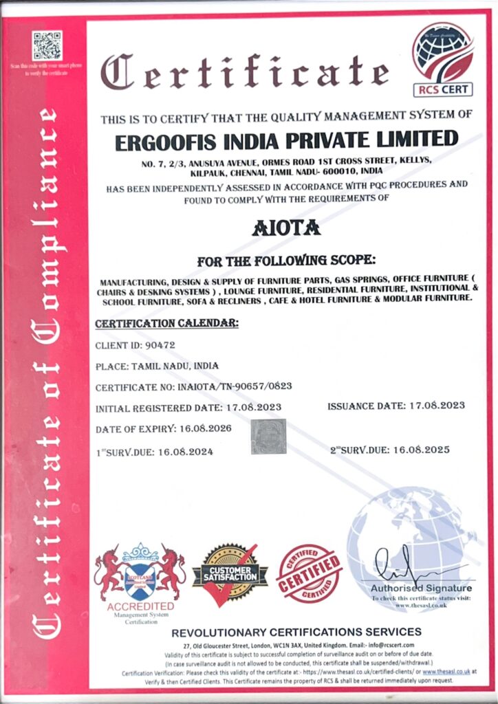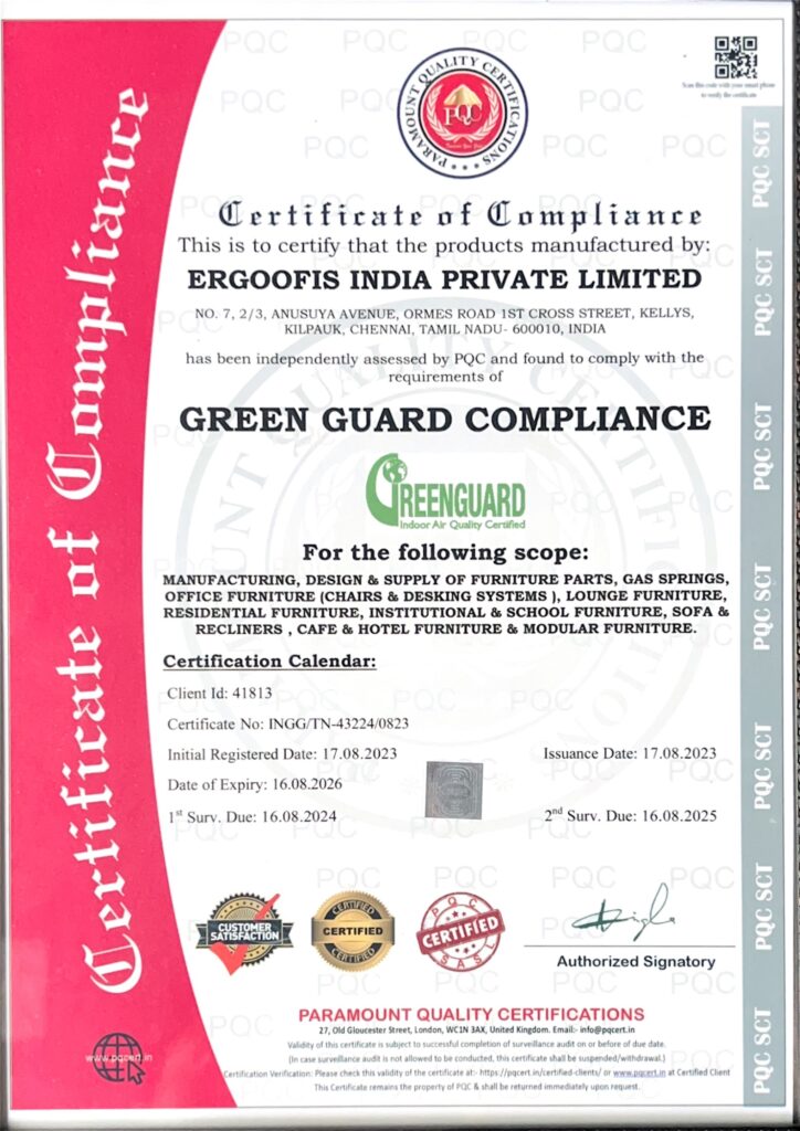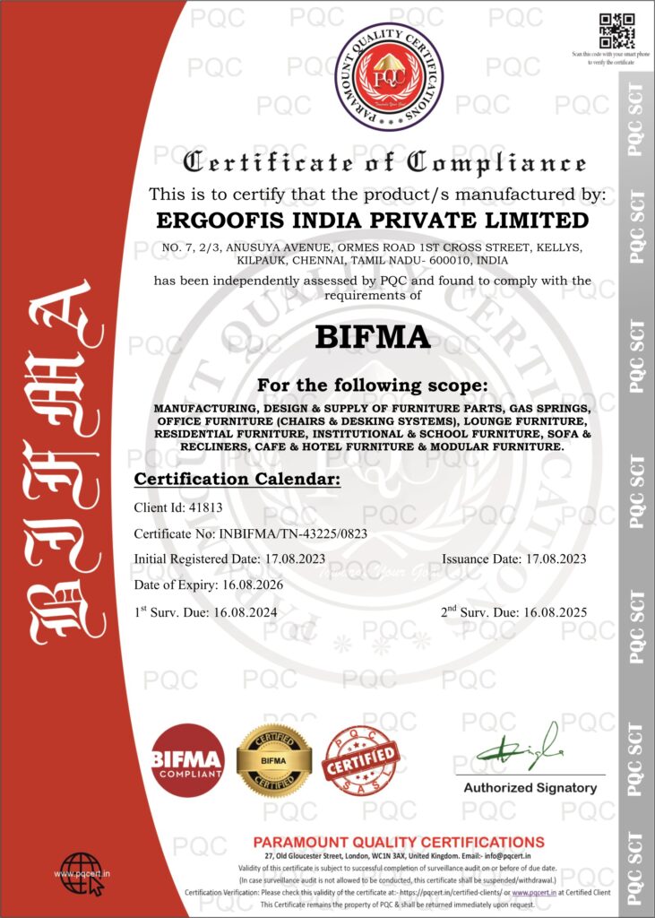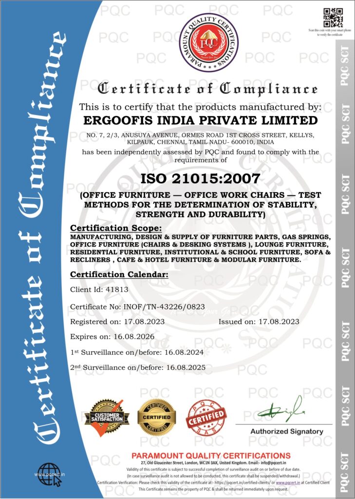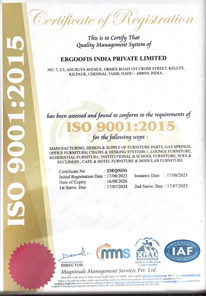 ERGOOFIS INDIA, a leading office furniture and seating systems manufacturer in Chennai, has over 15 years of manufacturing excellence backed by five decades in the Indian furniture industry.